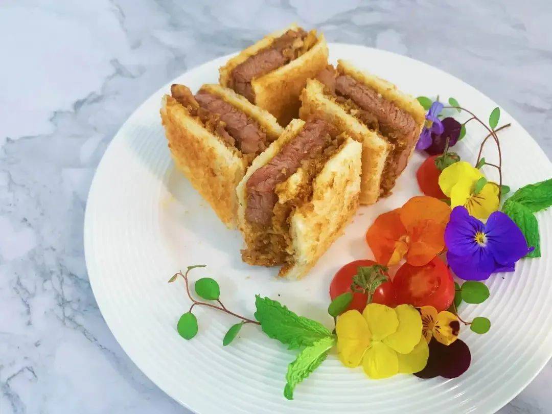 烤的外酥内软的吐司片,紧紧裹住那金黄焦香、新鲜多汁的牛排,似乎谈了一场跨界的爱情,擦出了甘旨的火花。