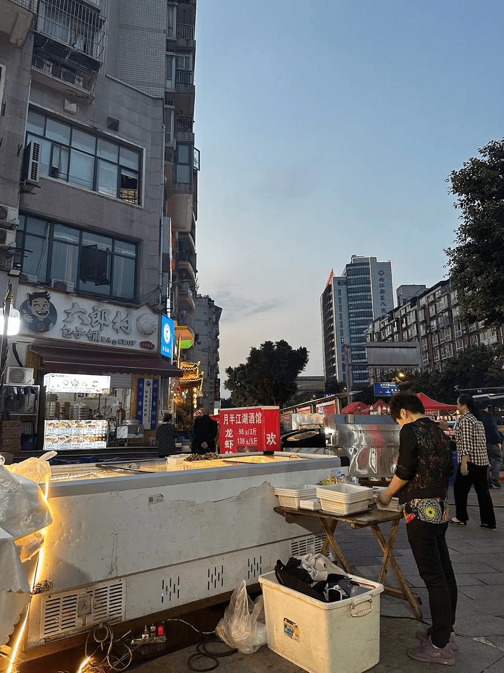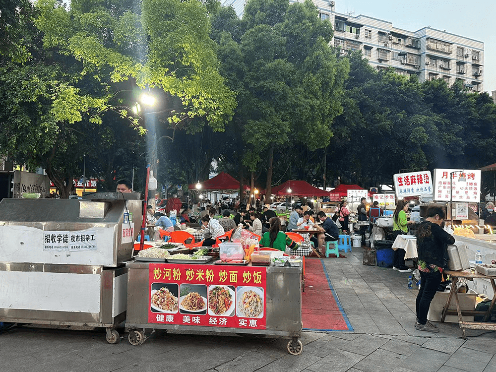 依照办理规则,夜市一般从黄昏六点开端,继续到清晨三点。但摊主们会在下午五点左右,从家里连续搬出烧烤架,锅具碗具,食材,桌椅等,全部准备作业安排妥当,一个小时就过去了。